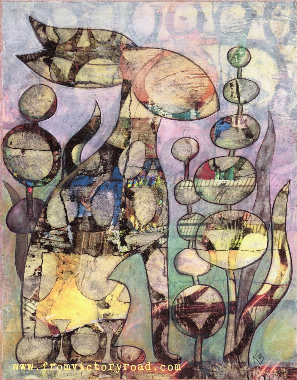 Artist Kayann Ausherman shares her techniques on how to use stenciling and embossing effects on the altered pages to add dimension to mixed media pieces.